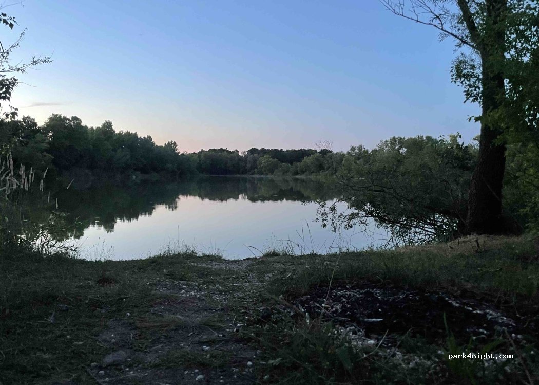 Bel endroit tranquille dans la nature pour le jour ou la nuit. Parking au bord du lac avec l'eau de Nice. Toilette sèche.