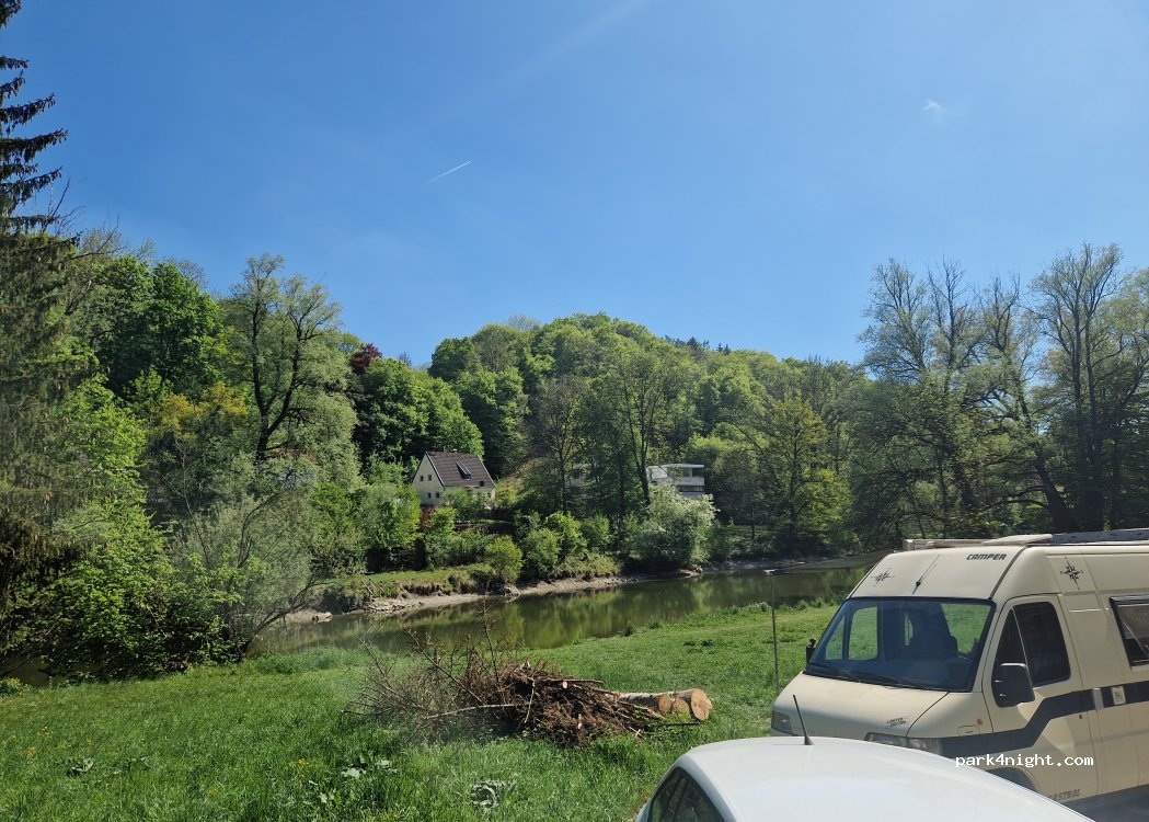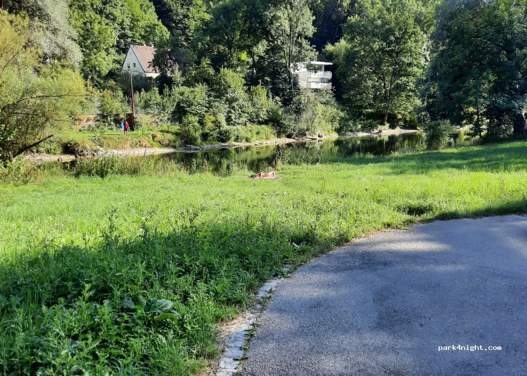 Belle place de parking calme juste sur l'Amper avec une grande place et un espace vert.
