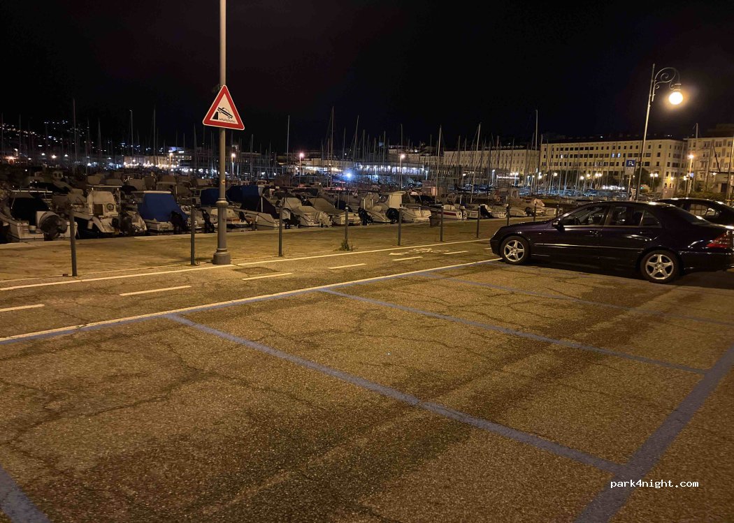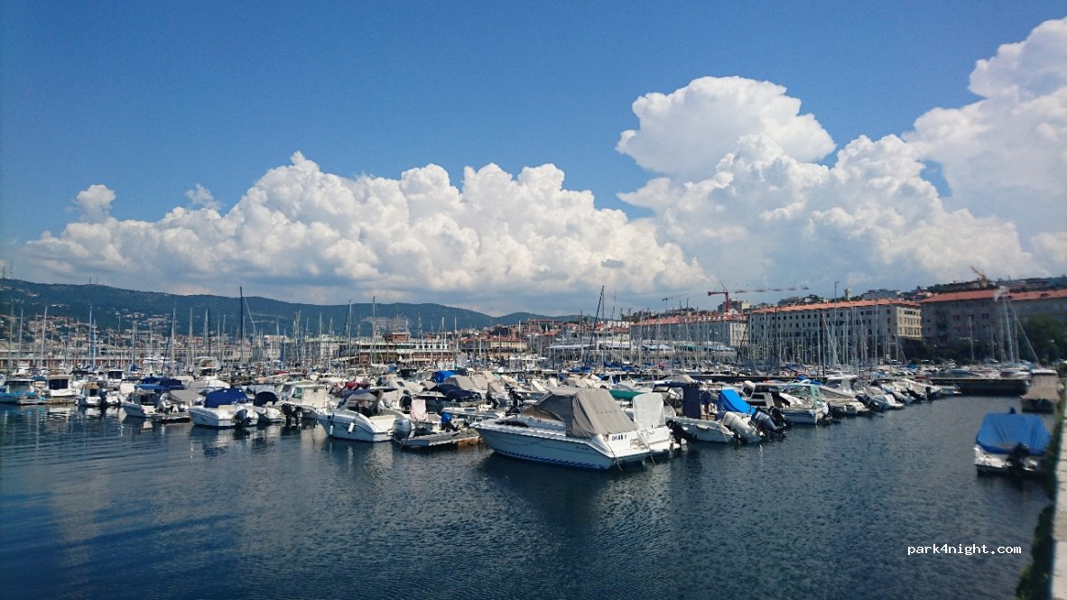 Great flat parking in the Trieste Marina, no interdiction and free at night, during the day crowded but parking space are large enough to fit a normal size camper without any issue. Feels secure thanks to all the boats and well lighted road in front of the parking. Walking distance from anywhere in the center, for Miramar castle and beaches you can take the bus or go with bycicles.