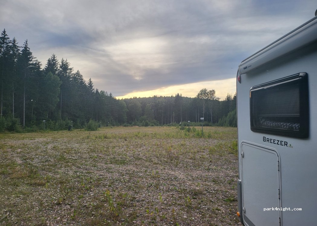 seltsam- große fast zugewachsene Wiese ohne schilder, in der osm karte als Parkplatz markiert. Wir lassen das womo mit einem mulmigen Gefühl allein (Platz ist "mitten im wald"), aber nach dem Tagesausflug in den Tierpark (toll!) ist alles ok. Abends massive fliegen invasion, sonst alles ruhig.