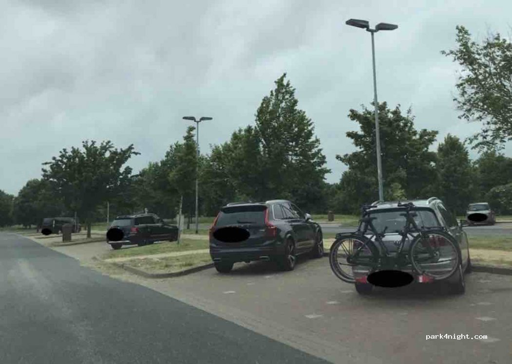 peu de monde et pas de bruit en se garant au bout de l'aire. Il y avait une place spéciale voiture et caravane. poubelles table de pique nique nous avons bien dormi à 20 min de Rostock