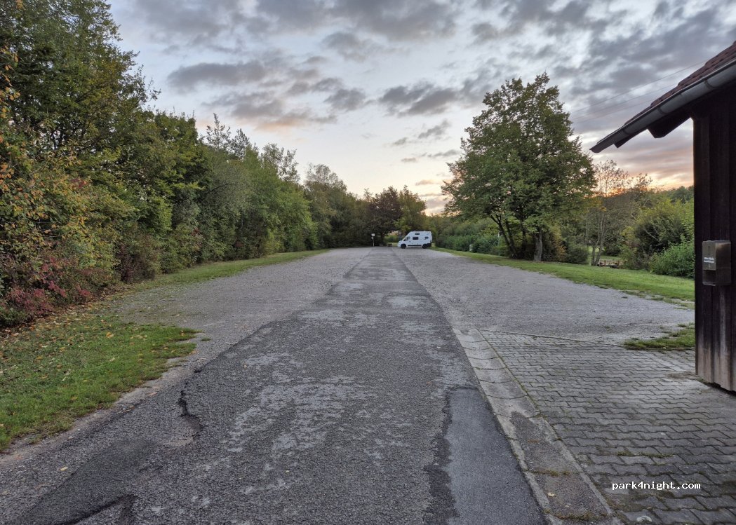 Der Parkplatz liegt hinter Bäumen an einer Landstraße. Nachts wenig Verkehrslärm. Wenn alle sich normal verhalten ist hier immer Platz!!! Bitte Müll mitnehmen. Ich stehe hier mittlerweile oft für eine kurze Übernachtung auf der Durchreise und kann nichts negatives berichten. Bitte sauber halten. Danke