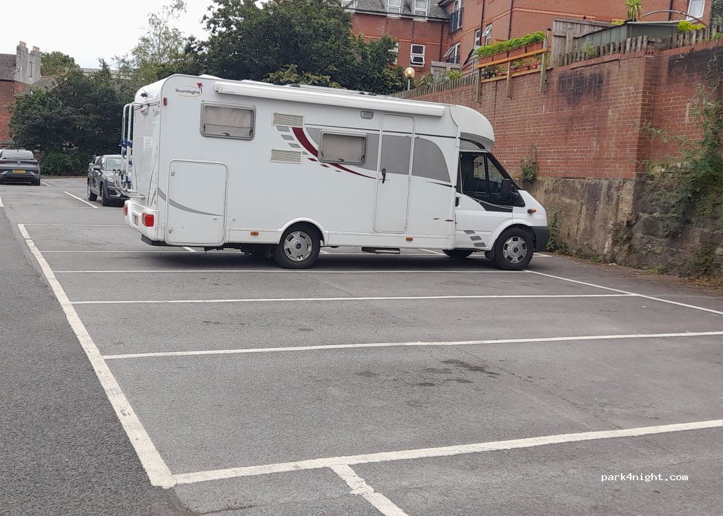 Hier twee nachten gestaan, beide nachten waren we de eerst enige camper. We stonden eerst links tegen het grijze gebouw en zijn opgeschoven naar één van de vier grote plekken toen die vrij kwam. Betaald met Ringgo. De plek is niks bijzonders maar voldoet prima om Exeter te bezoeken. 's nachts rustig. Voelt veilig genoeg vanwege de vele woonhuizen die er ook aan grenzen.