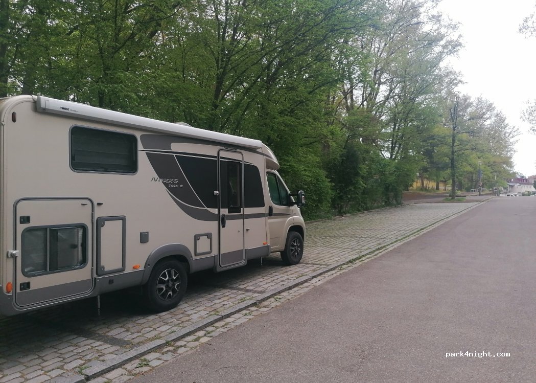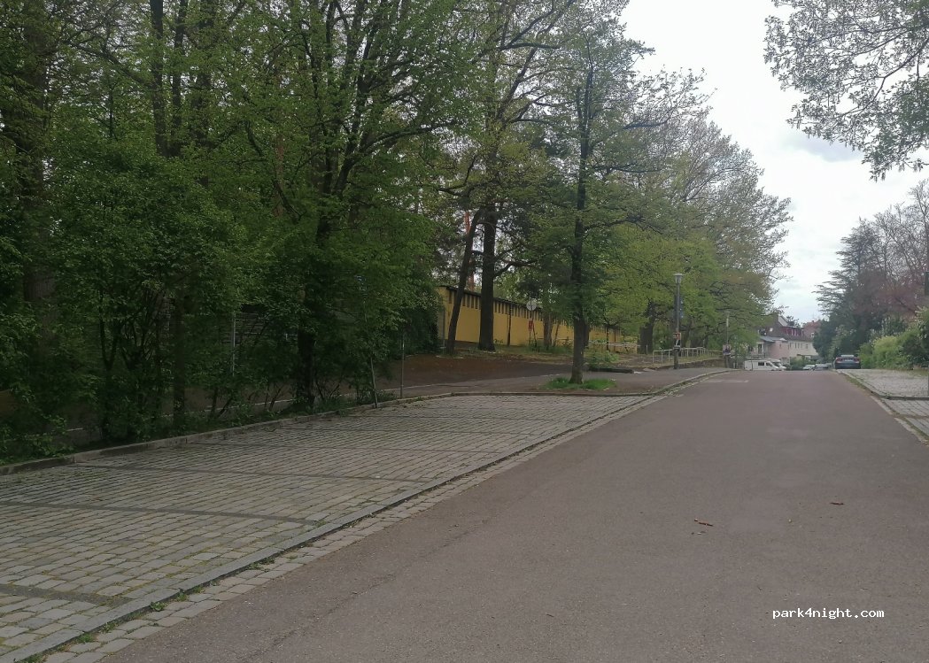 Outdoor swimming pool parking lot in a dead end street surrounded by trees. There are no prohibition signs. Admission to the outdoor pool costs, but you can take a great shower, swim and enjoy the sun here.