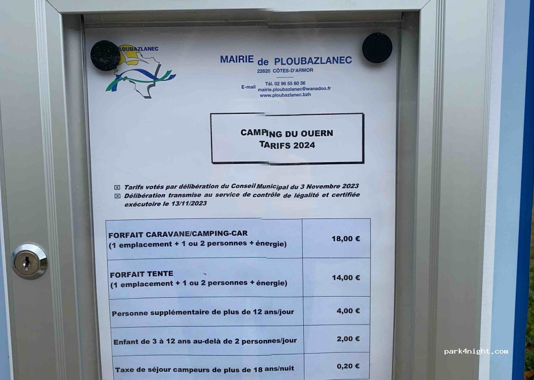 A proximité de la plage, d une aire de jeu avec sanitaire et électricité 18€ pour un camping car de 2 personnes +2€ par personnes supplémentaires L agent passé matin et soir