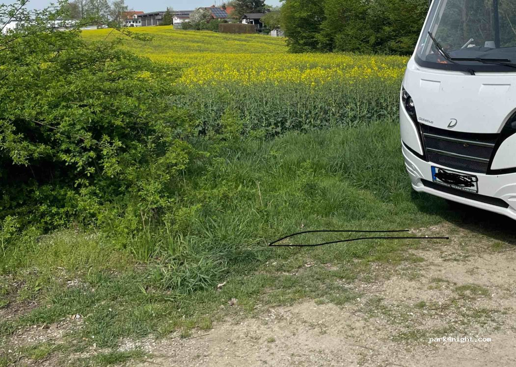 Parking public bien séparé de la route par des arbres. Comme toujours, laissez le site propre et rangé afin que la communauté puisse continuer à proposer des offres adaptées aux campeurs. Merci à Taufkirchen...