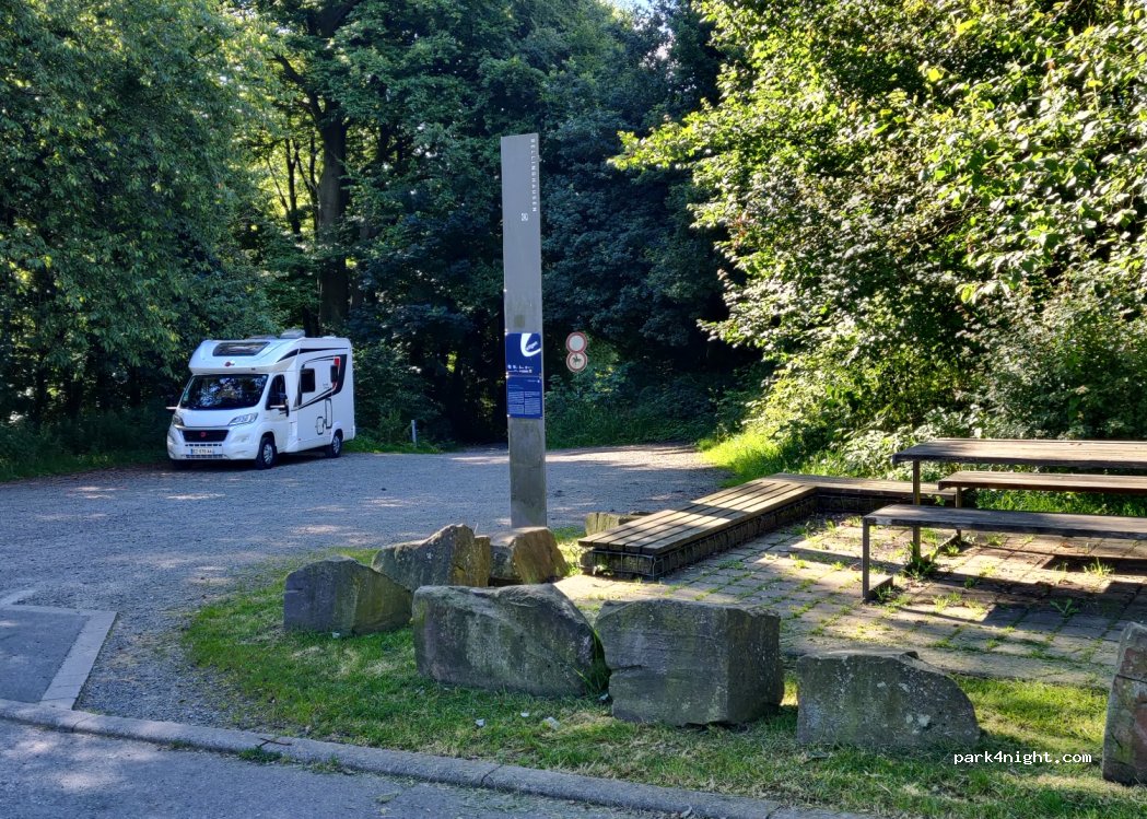 Wanderparkplatz Bellinghausen, qui n'est pas directement sur la route, un peu en retrait. Entouré d'arbres. Seulement quelques places de parking droites, mais le soir il n'y a plus de promeneurs et puis tout est gratuit. Point de départ de belles randonnées dans l'Eifgental.