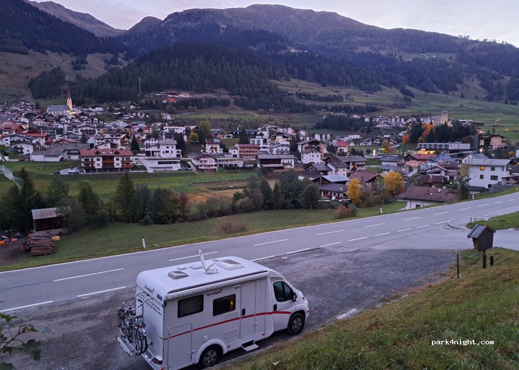Guter Platz für eine Zwischenübernachtung. Man kann sich bei der Musikbar Nauderns (im Netz suchen) problemlos eine Pizza (~15€) ans Womo liefern lassen, die sehr gut war.