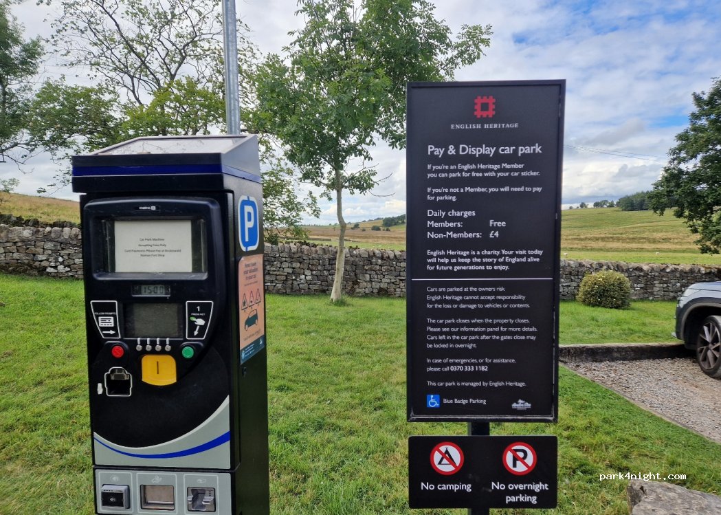 Large car park for Hadrian's Wall. Internet reception is so mediocre, toilets and bins are further up the shop. Here you also have to pay for the parking lot if you don't have coins and want to pay by card.