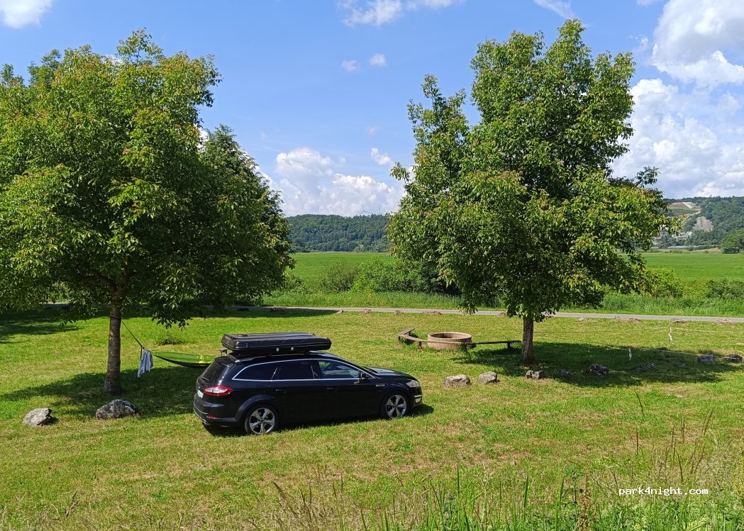Netter Platz an der Lahn, feuchter weicher Untergrund, die B49 ist recht laut. Ideal für Kanuten