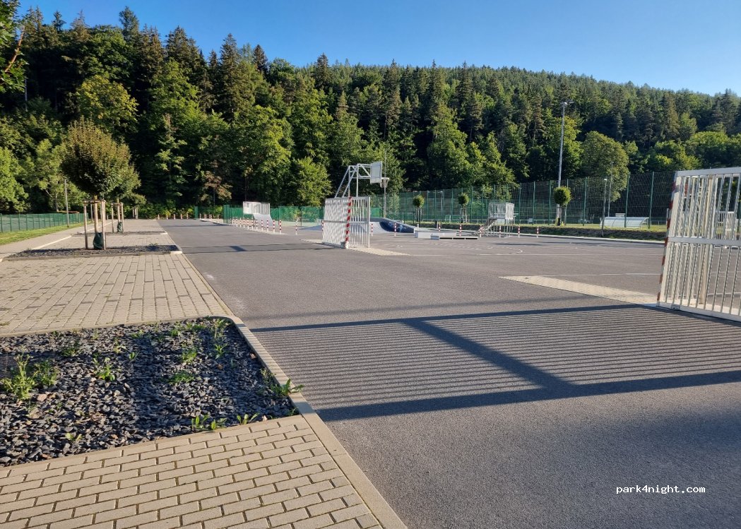 Large parking lot between an outdoor swimming pool and a large public sports facility. Occasional school sports and swimming pool visitors during the day. In the evening and at night great and quiet. City center within 10 minutes walking distance. Good starting point for hikes in the area.