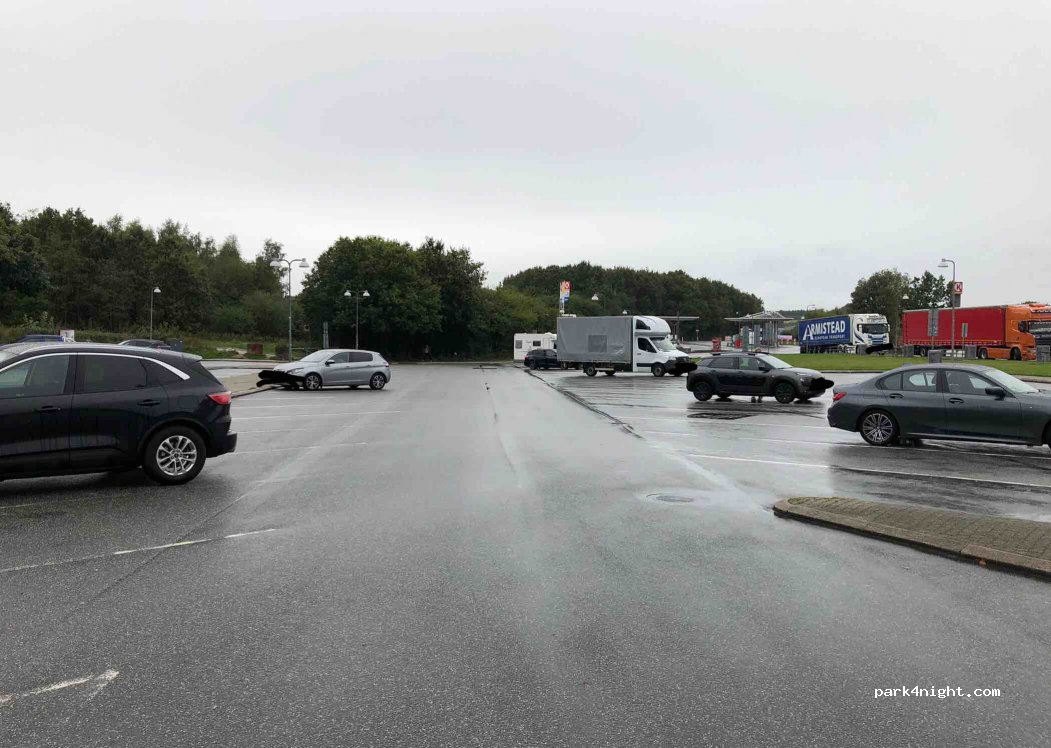 Autobahnraststätte mit extra großen Parkbuchten für Wohnmobile oder Gespanne. Gute Möglichkeiten mit dem Hund zu gehen.