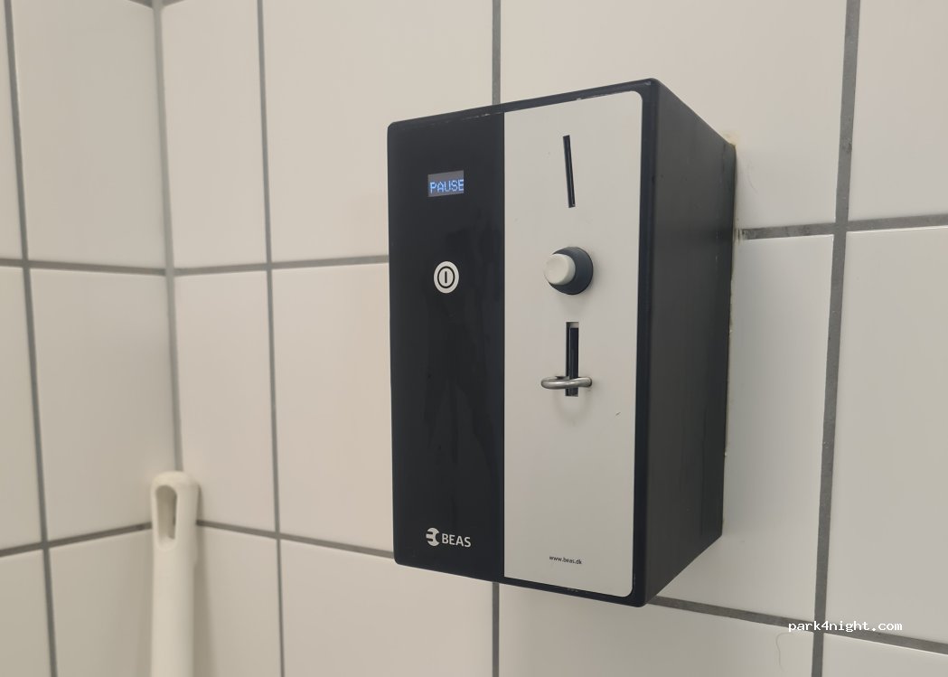 Here's how to access the shower: go to the main counter in the gas station and ask to use the shower. They will ask for your car key in exchange for the shower door key and token. Pay 30kr then go downstairs and the door to the shower is directly ahead. Private toilet as well as shower (pictures), put the token in the machine and press start button for 5 minutes hot water (good pressure!)