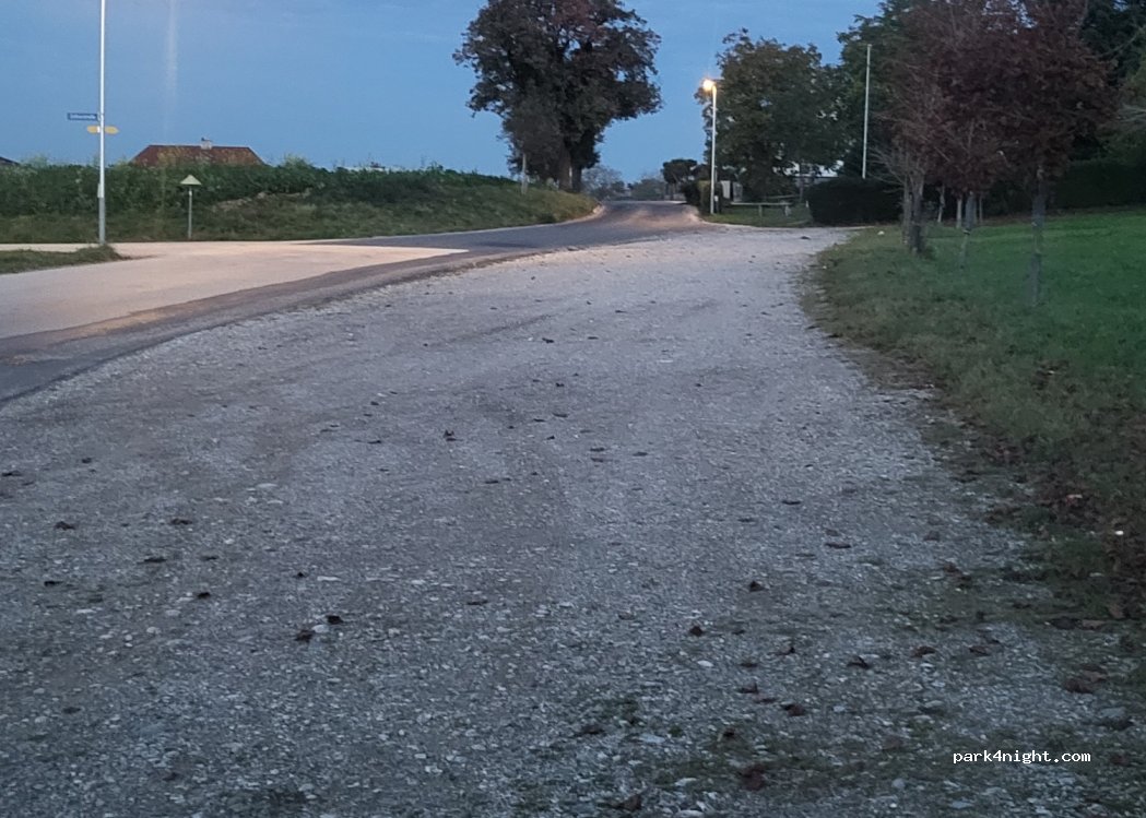 Pequeño lugar de grava justo al lado de la carretera con poco tráfico. Preciosas vistas al campo debido a su posición elevada. No señal.