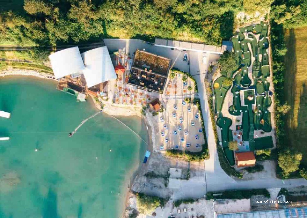 C'est le parking du centre de ski nautique, pour une somme modique, vous pouvez passer la nuit ici. En plus de l'installation de ski nautique, il y a un mini-golf et un lieu d'événements avec des terrains de beach-volley. Il y a des restaurants et les installations sanitaires du centre de ski nautique peuvent également être utilisées.