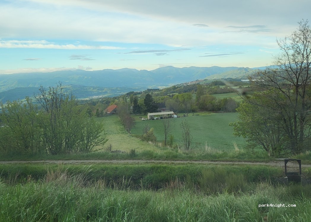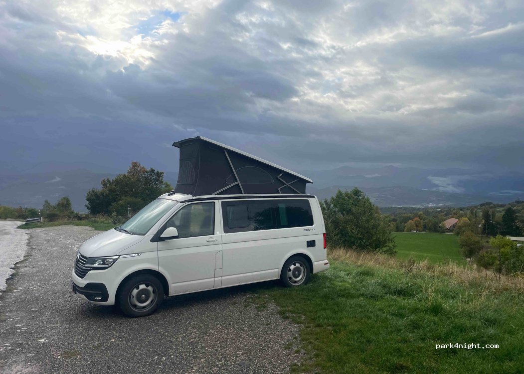 Small car park with just a few places (no height limit) on the edge of a busy but limited road, no services, however, a nice view of Ceuze and the valley.