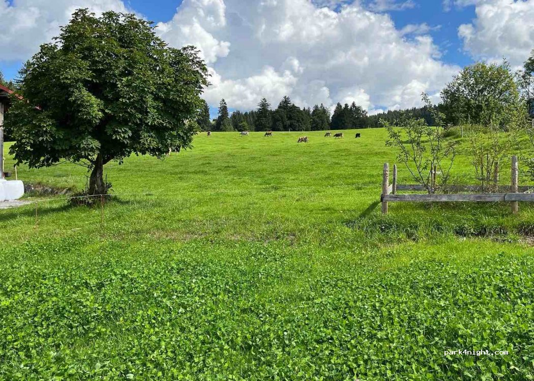 Enjoy your Allgäu vacation at our RV pitches in the beautiful Hochweiler district near Altstädten. Our small village is located at an altitude of 920 meters, with panoramic views of the Iller Valley. You can stay in the immediate vicinity of our farm for up to 7 days. Of course, you will also receive the AllgäuWalserCard guest card with many discounts for Alpsee-Grünten. Electricity and water are included, a toilet with a sink is available for an additional charge, and no toilet disposal is required (the nearest nearby option is the outdoor pool in 87538 Fischen). In winter, four-wheel drive is recommended for access to the village on the mountain ;-) The Adelgoß family looks forward to your visit and also offers a cozy holiday apartment "Sunnesidde" for 2 people year-round. NEW from 2024: self-service refrigerator with regional farm products and Allgäu souvenirs. Please call and reserve before arrival.