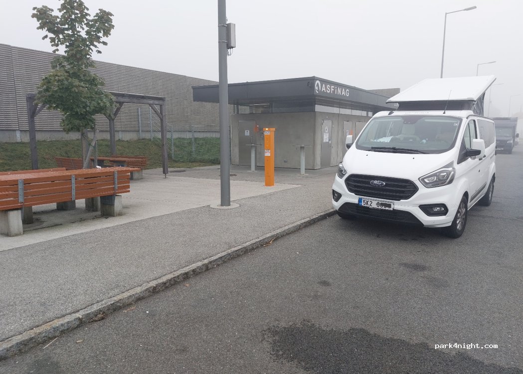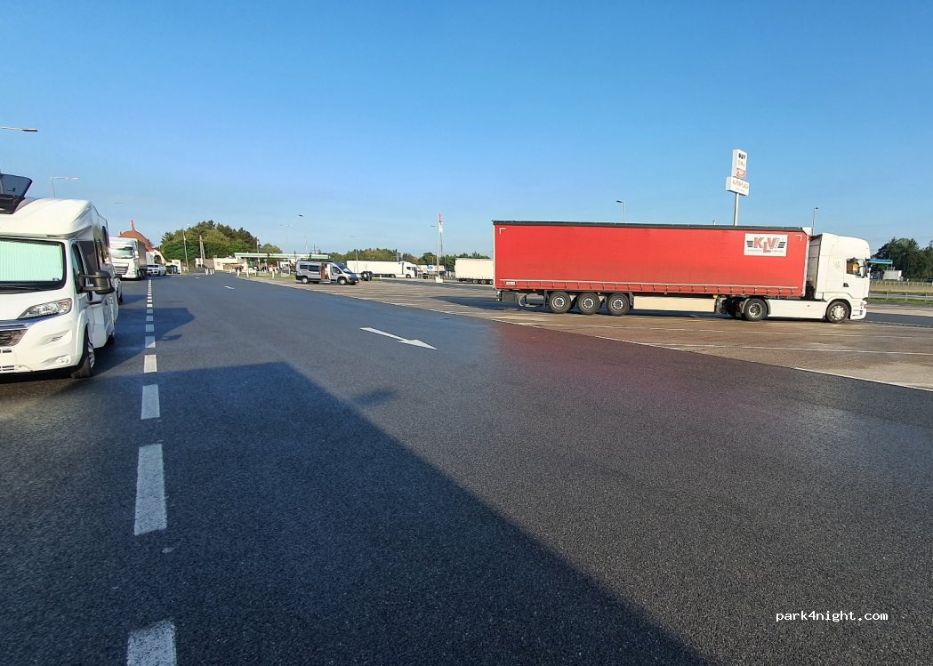 Za čerpací stanicí je velká plocha na parkování na štěrku, kde jsme stáli sami. žádný zákaz tam nebyl. Kolem nikdo, hluk v podstatě žádný. Krásná jedna noc
