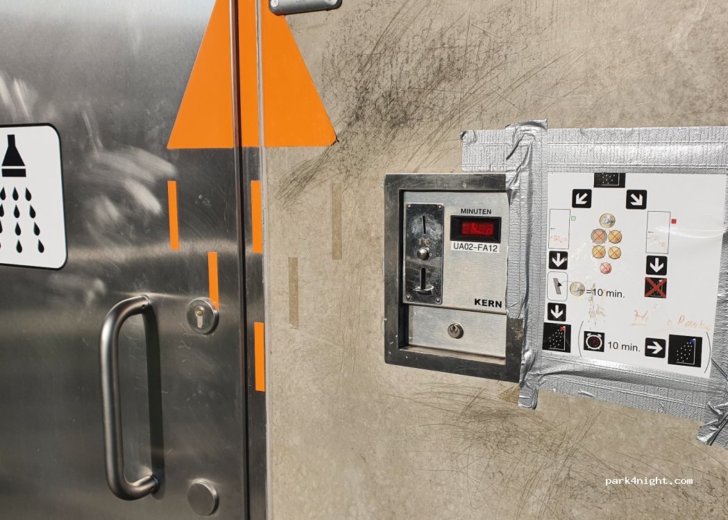 Good warm shower, clean toilet. 1€/10min. Possibility to fill drinking water