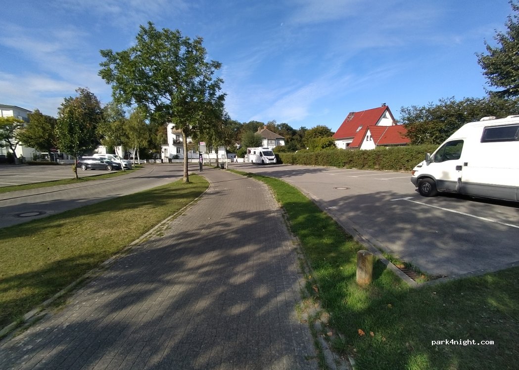 Wir haben dort ebenfalls eine sehr ruhige Nacht verbracht. Davor und danach mit der App für 2,30 pro Stunde zzgl. Kurtaxe genau angepasst. Für Vans ideal, kleinere Womos gehen auch noch. Es sind normale Parkplätze markiert. Ggf. Heck über Rasen. Nur wenige Schritte zum Meer, zur Steilküste und zum sehenswerten Gespensterwald. Haltet den Platz sauber und lasst die Campingsachen drin!