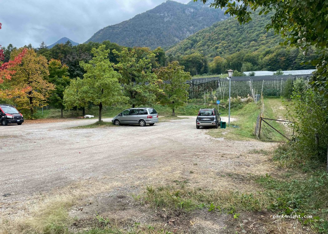 Straight parking lot at the Raiffeisen-Arena Kaltern (ice hockey). We stood here one night and it worked without any problems. The place was very quiet in the evening. There's a lot going on during the day. There is a pizzeria just around the corner.