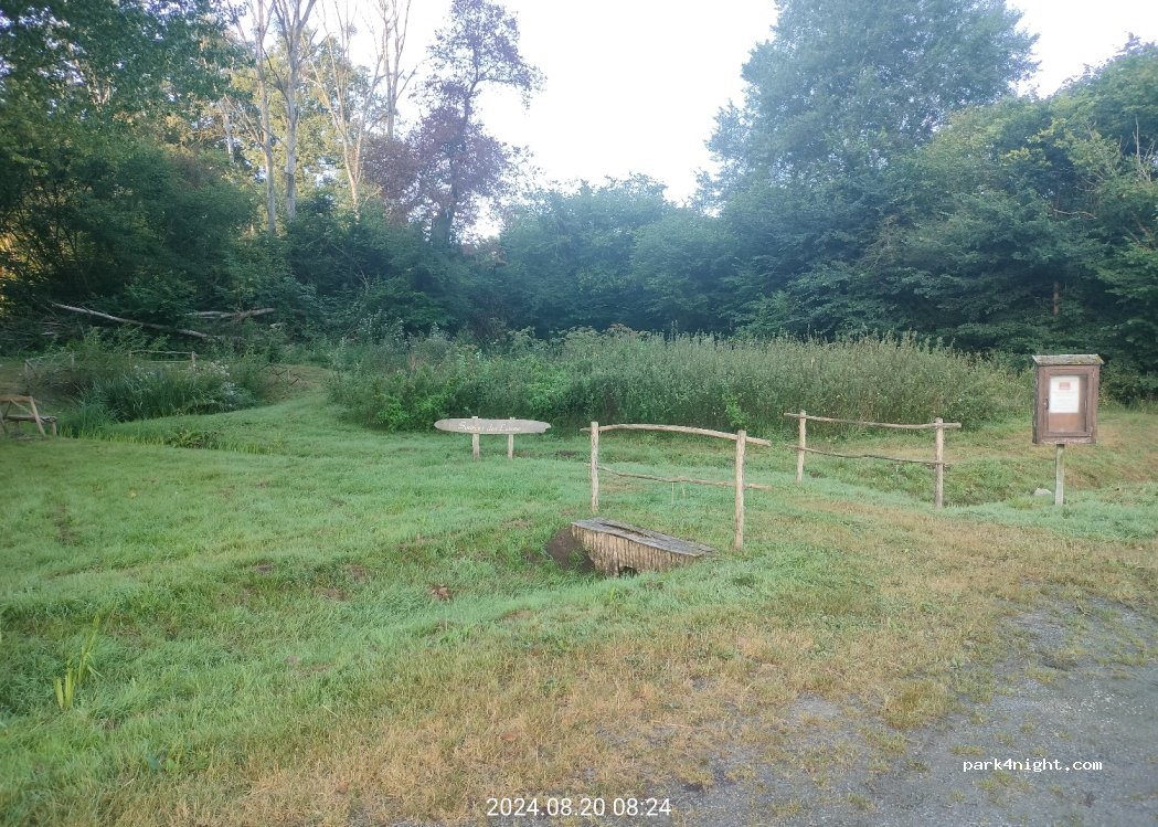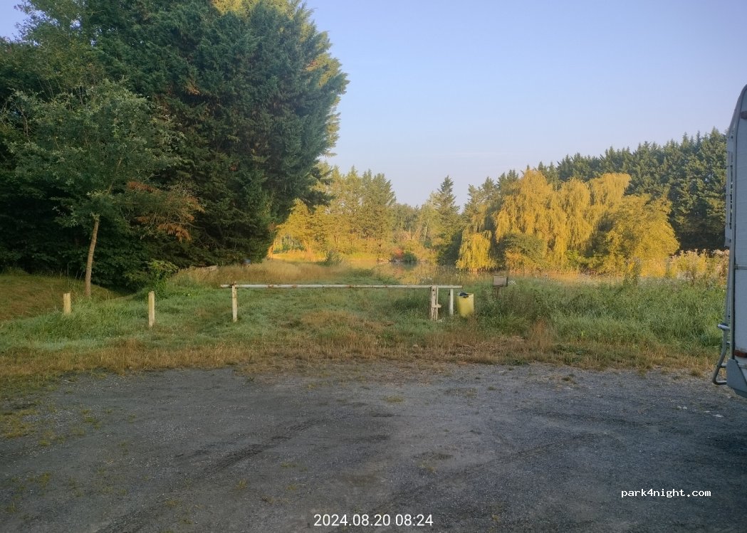 Small car park attached to the pond (2 or 3 vehicles max van of 5m/6m. Presence of tables and bins. Very quiet to spend a night in the off season