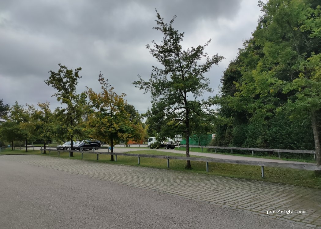 It's impossible for who has more than 6 meters... For vans it's perfect. We has 7m so we parked in other parking a 100m to the left. we walked 15 minutes to S station and in 45 minutes we were in city center. It was the option we had to visit Munich once the Allianz arena was closed and the other space for campers were totally full.