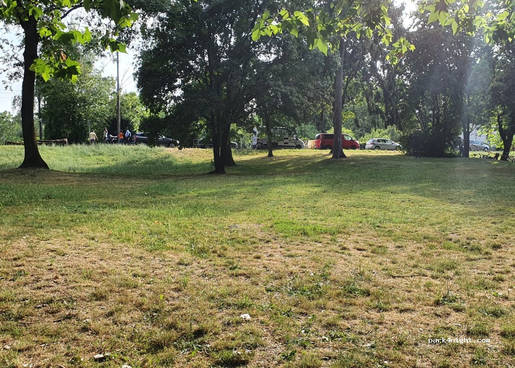 Sicherer und ruhiger Stellplatz. Beim Kiosk nebenan kann man sich Getränke holen und Stühle ausleihen, mit denen man im Park chillen kann. Der Kioskbetreiber war sehr nett und hat und sogar eine Toilette angeboten. Wer seinen Müll mitnimmt und sich komplett ruhig verhält, wird hier keine Probleme bekommen. Die Polizei macht öfters Kontrollfahrten und man fühlt sich auch im Dachzelt sicher.