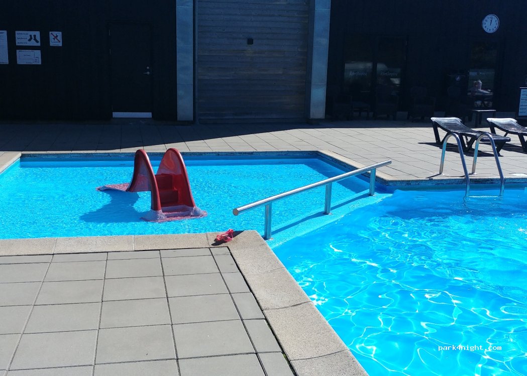 Super camping avec piscine, sanitaires nickels, aire de jeu. Mais super cher. (665dk soit) 90€ pour 2 adultes, 1 enfant de 12 ans qui compte adulte, 1 enfant de 6 ans, 4 douches, 2 machines à laver (30 Dk par machine) et 1 sèche-linge (20 dk) : le tout pour 1 nuitée.