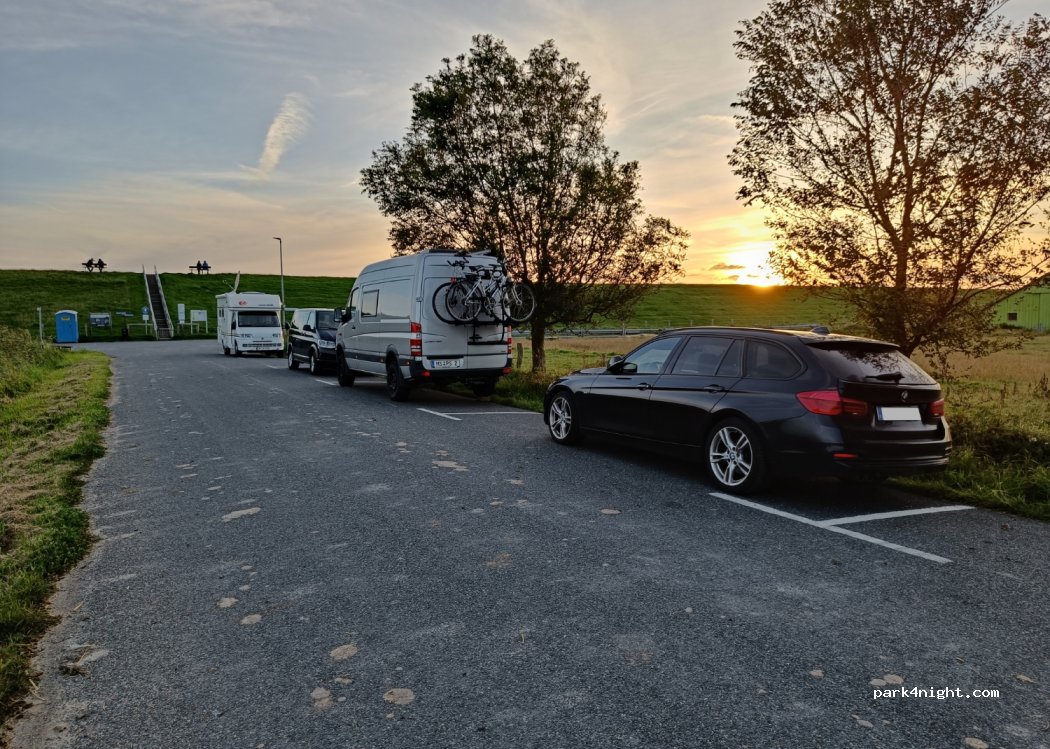 Super ruhiger und abgelegenen Platz zum Parken und auch übernachten. Dixiklo und Mülleimer vorhanden. sind leider sofort wieder gefahren, weil wir nach 5 min komplett von Mücken zerstochen waren als wir die Treppen zum Deich hoch sind. In kühleren Jahreszeiten fällt das sicher weg und dann ist es super dort spazieren zu gehen. Waren mit Hund da.