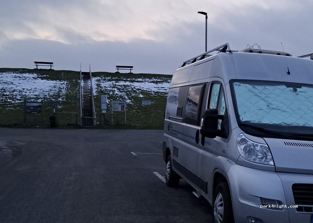 Wunderschöner Parkplatz mit acht Stellplätzen, umgeben von idyllischer Natur mit hunderten, vielleicht sogar tausenden Schafen, Fasanen, Hasen und Vögeln verschiedenster Arten. Die ruhige Atmosphäre der Nacht wird gelegentlich vom Blöken der Schafe untermalt. Kostenfreies Parken und atemberaubende Sonnenuntergänge machen den Aufenthalt perfekt. Wir waren die einzigen Besucher.