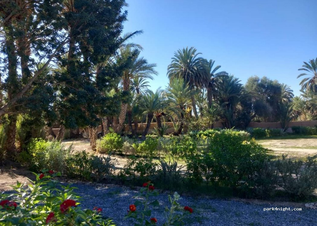 Joli camping à taille humaine, bien organisé. Eau chaude, également à la vaisselle. Charmant accueil de Hassan puis de Valérie. Échanges riches. Jolie balade à faire autour du camping à pied ou à vélo, dans la palmeraie ou aux alentours.