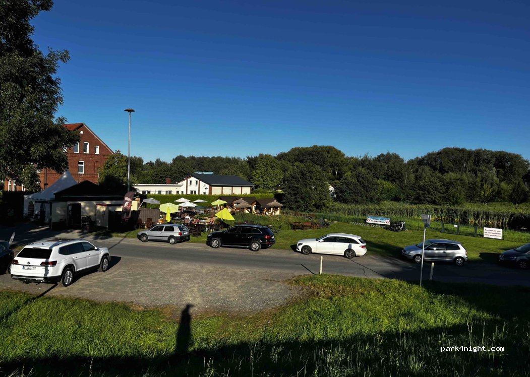 Der Platz ist nicht als Parkplatz deklariert. Die Wirtin der Imbissbude sagte uns, dass dort ab 6h früh die DLRG trainiert. Als Ü-Platz nicht geeignet, wir sind weitergefahren zum P an der Schule (P4N), dort einwandfrei.