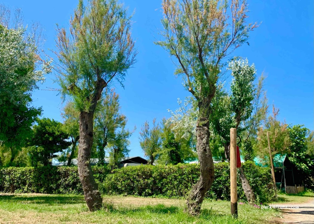 Schöner CP direkt an der Düne mit direktem Zugang zum Strand. Sanitäranlagen in die Jahre gekommen und hätten öfters gereinigt werden können . Viele Plätze in den ersten Reihen haben kaum Schatten. Ansonsten war der Hund kein Problem und der Preis war in Ordnung. Am Eingang ist ein kleiner laden, ein Restaurant und eine Bar. Viele Italienische Dauercamper.
