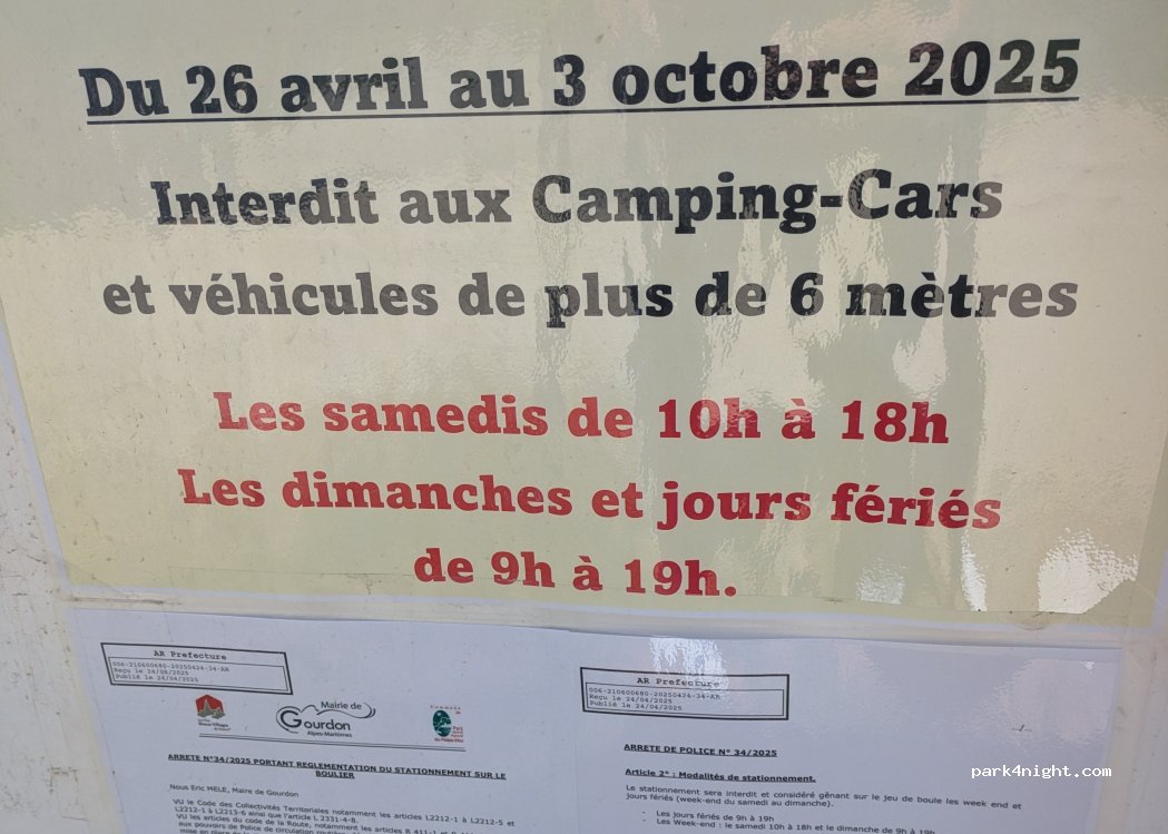 Parking is forbidden for motorhomes and vehicles over 6 meters from April 26th until October 3rd 2025, on Sundays between 10:00 - 18:00 and Sundays and public holidays between 09:00 - 19:00!