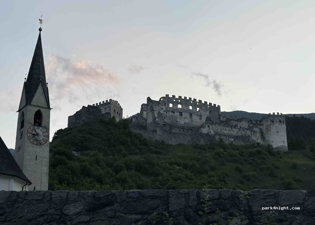 Piccolo parcheggio vicino a un castello. È piuttosto ripido, ma la larghezza del parcheggio è adeguata. Splendida vista sul castello e sulla chiesa. Non adatto a camper di grandi dimensioni.