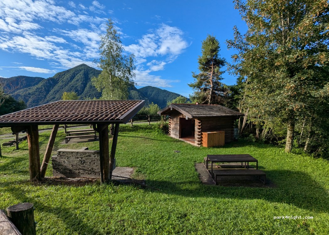 Ruhiger Stellplatz für 2–3 Fahrzeuge mit Grillstelle, Picknickbänken, überdachter Hütte und Müllstation. Traumhaftes Bergpanorama, Aussichtspunkt mit Blick auf den Idrosee nur wenige Schritte entfernt. Zufahrt eng, mit kleiner Wasserfurt – etwas Bodenfreiheit nötig, mit VW T6 gerade noch machbar. Am Morgen wurden wir von einer Schafherde geweckt. Sehr idyllisch. Bitte sauber hinterlassen.