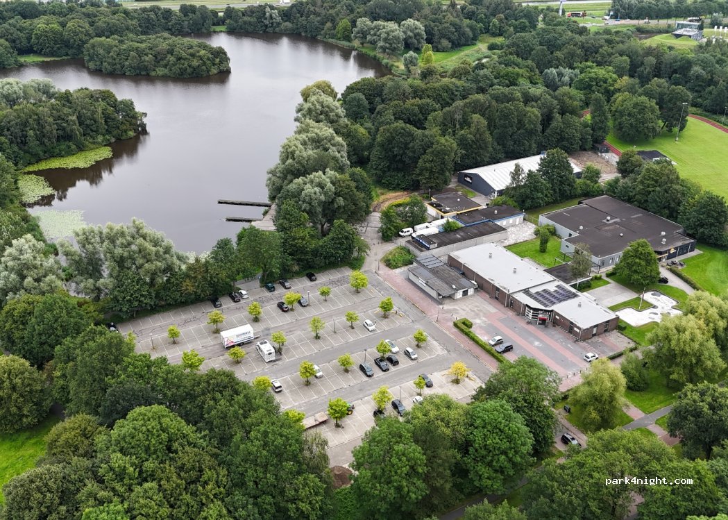 Parkeren bij het stadspark met prachtig uitzicht op het meer :) hier een nacht rustig gestaan.