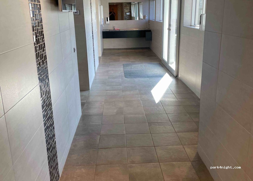 Trist når campingpladsen lover vandudsigt fra alle pladser og man så sidder og glor direkte ind i naboens vogn. Pladsen er overfyldt, hver en kvadratmeter er benyttet. Samtidig er det den eneste plads hvor jeg har stået i kø flere gange for at komme på wc eller i bad. Det er virkelig en skuffelse af en 5 stjernet plads, og havde vi ikke betalt så meget for opholdet havde vi fundet en anden plads.