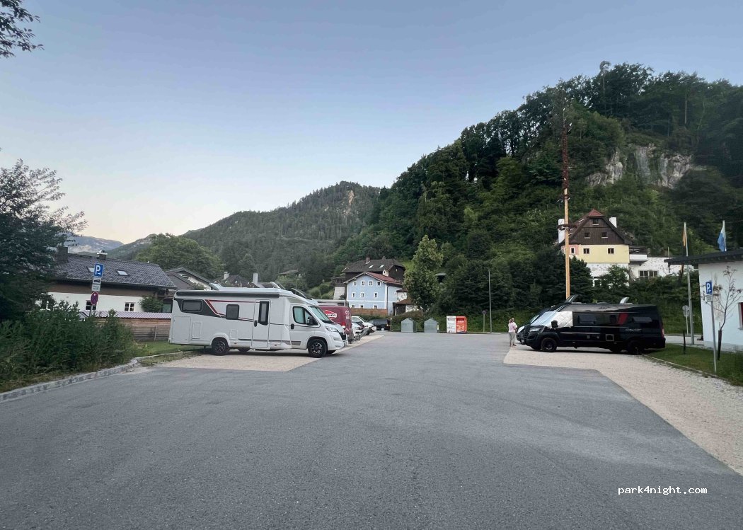 Leicht abfallender Parkplatz neben dem Feuerwehrhaus. Guter Ausgangspunkt für eine Wanderung. Viel Platz. Die Parkbuchten sind lang und bieten hinten Platz zum Überhängen im Gras. Auf den Schildern steht ein maximaler Aufenthalt von 48 Stunden. Es liegt in einem Wohngebiet. Keine Dienstleistungen, es ist nur ein Parkplatz.