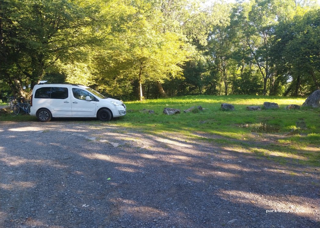 Très bel endroit, très fréquenté la journée mais très calme la nuit. Par contre nous avons eu la visite du maire de la commune qui nous a ensuite envoyé la gendarmerie: une seule nuit tolérée, se garer sur les gravillons et pas l'herbe, rester discret, propre, ne pas squatter la journée, pas de bruit, de feu etc... En bref: accueil frisquet des locaux...