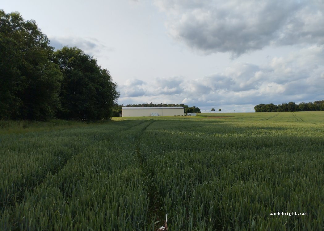 Deze plek zonder te reserveren bezocht. Mooie vlakke plek gemaakt door de eigenaar met stroomvoorziening. Langs weg waar het ‘s avonds wel rustig wordt. Uitzicht over de akkers mooi om even 1 nacht te staan.