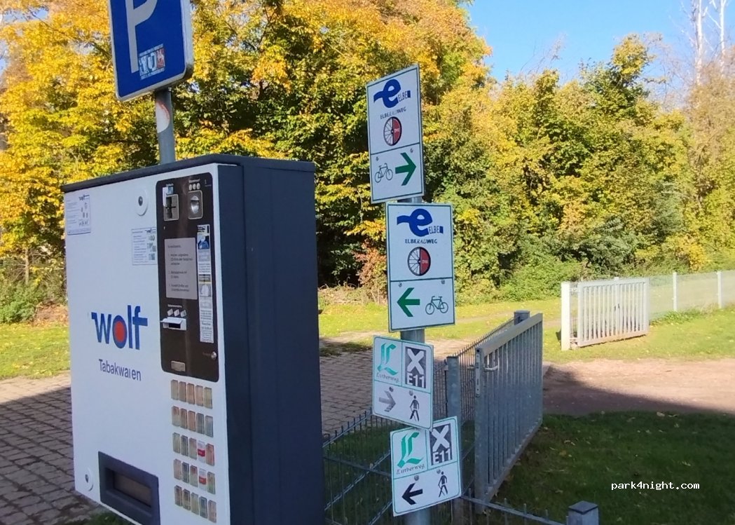 Bel endroit juste sur l'Elbe. Le parking est une zone pavée en herbe avec une vue directe sur le ferry et appartient à l'hôtel et au restaurant. Le portail est ouvert et vous pouvez vous présenter à la réception. L'équipe de l'hôtel est plus que sympa ! Pure paix et détente. Le bruissement de la chaîne du ferry en fait autant partie que le chant des oiseaux et le rugissement de l'Elbe.