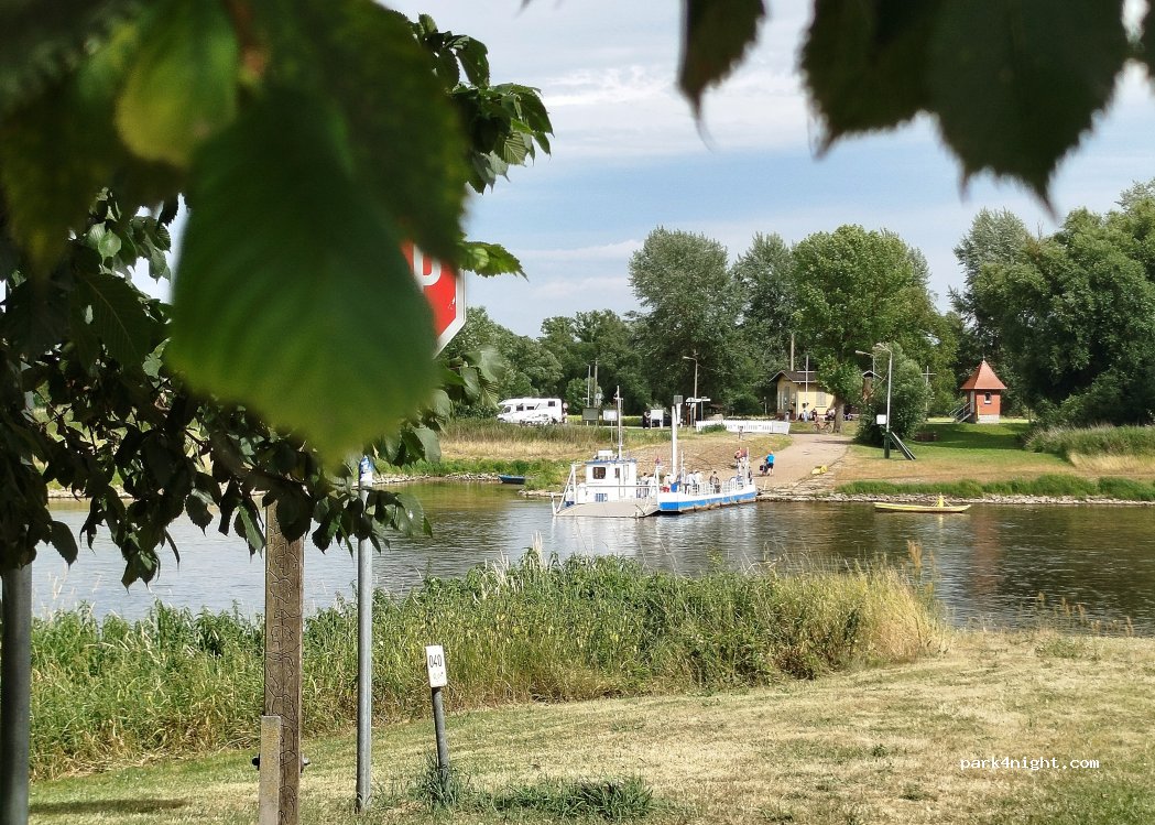 Prachtige plek direct aan de Elbe. De parkeerplaats is een verhard grasveld met direct uitzicht op de veerboot en hoort bij het hotel en restaurant. De poort is open en u kunt zich melden bij de receptie. Het hotelteam is meer dan aardig! Pure rust en ontspanning. Het geritsel van de ketting van de veerboot hoort er net zo goed bij als het vogelgezang en het ruisen van de Elbe.