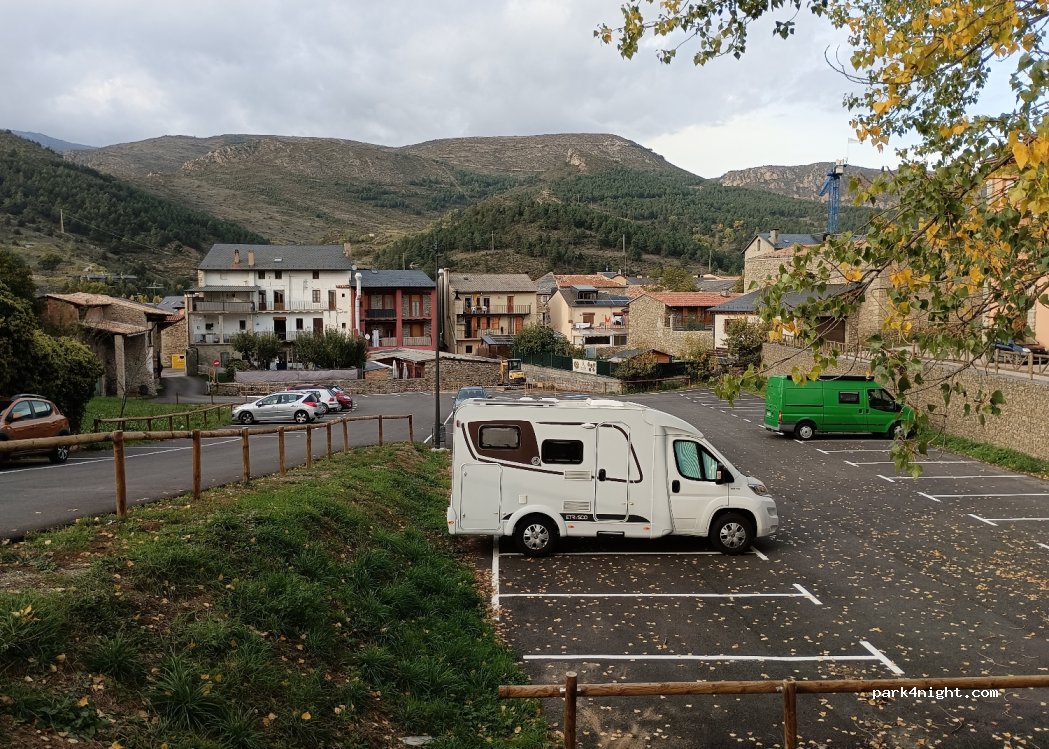 Idéal pour la visite : à mi chemin entre le circuit de visite de la vielle ville (300m) et la cathédrale Romane Santa Maria de Talló (700m). Nous y avons passé une excellente nuit sur les places du haut plus plates que celle du bas.