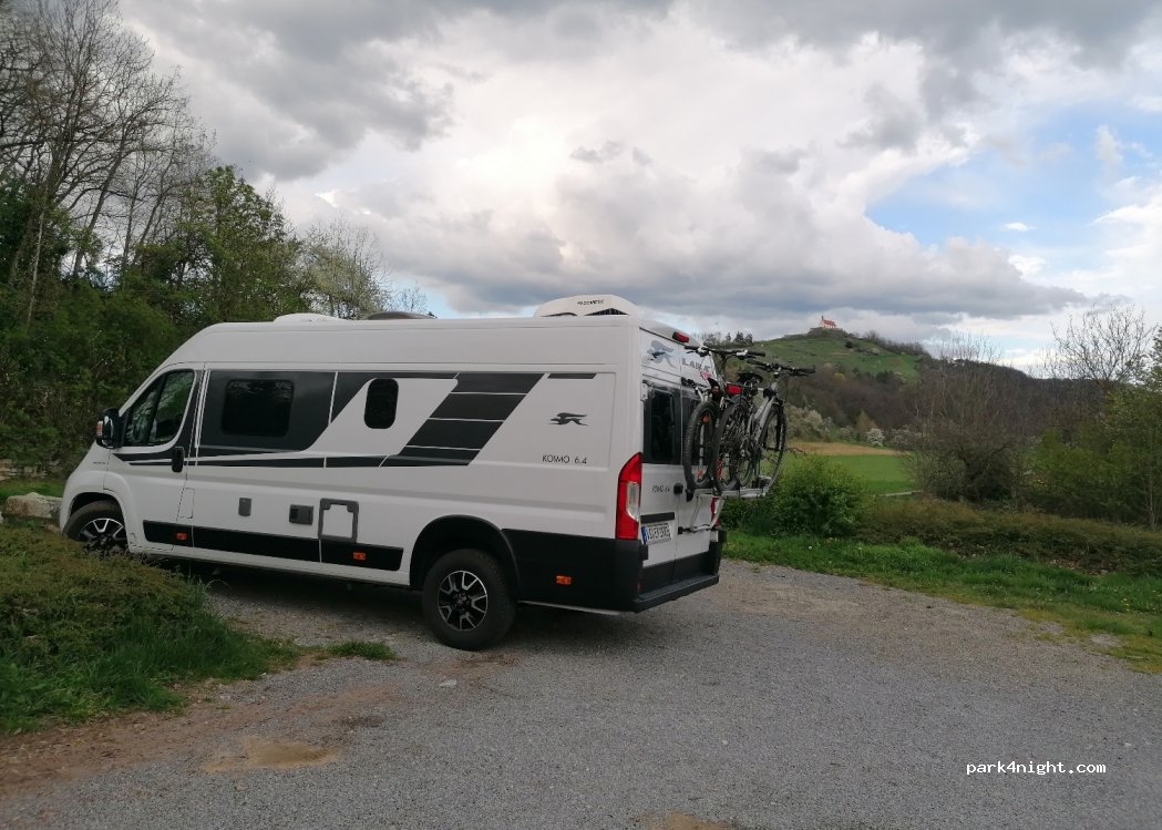 Der abgebildete, obere Parkplatz hat jetzt eine Höhenbegrenzung auf 2m. Der darunter liegende Parkplatz ist ohne Höhenbegrenzung erreichbar, ist aber nicht so schön wie oben.