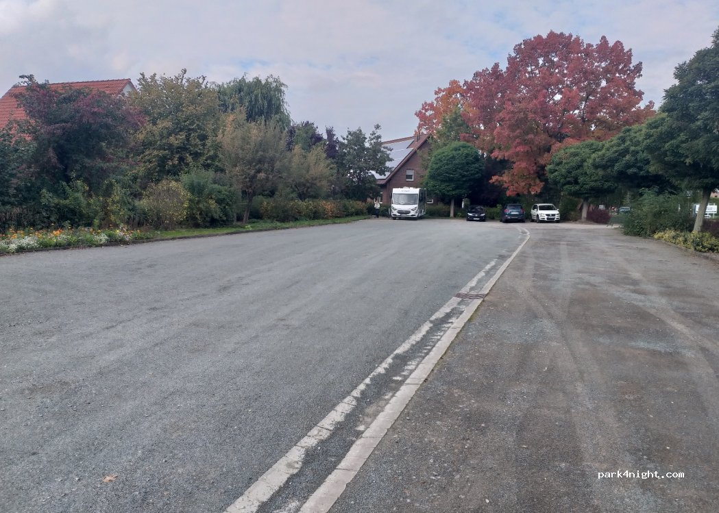 mittelgroßer PKW Parkplatz, auf Schotter. liegt an der Ortsdurchfahrtsstraße, nachts sehr ruhig.