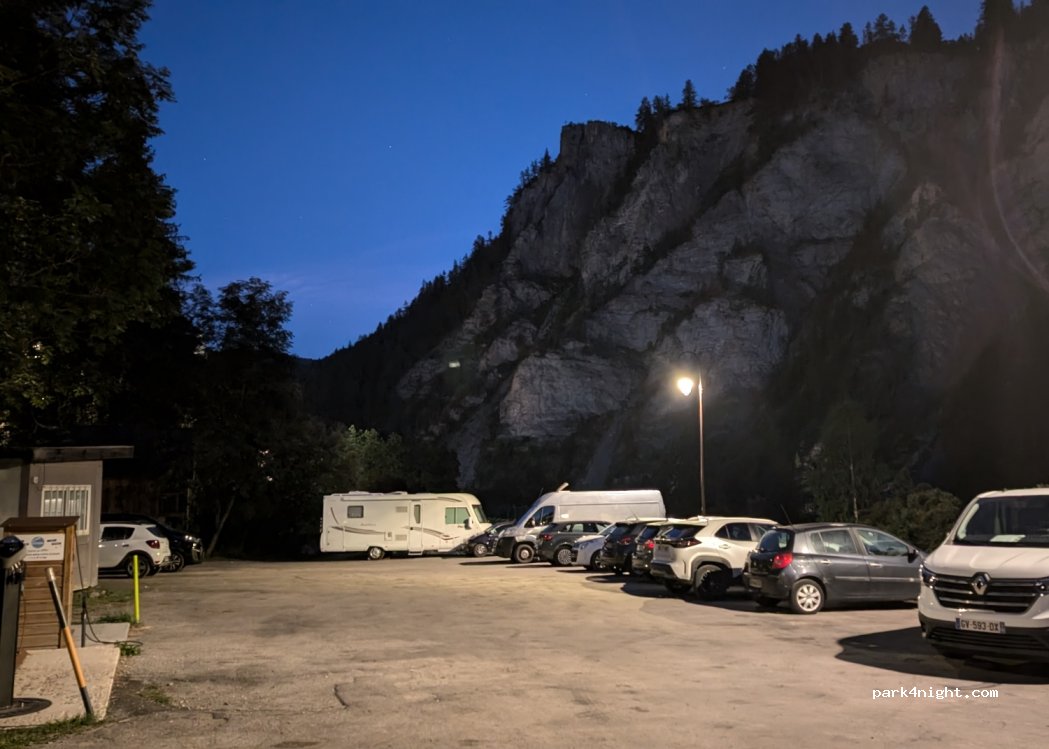 Coin super, calme on dort au bruit du torrent qui nous berce, très joli paysage et un très beau village à visiter, parking avec WC et lavabo très propre