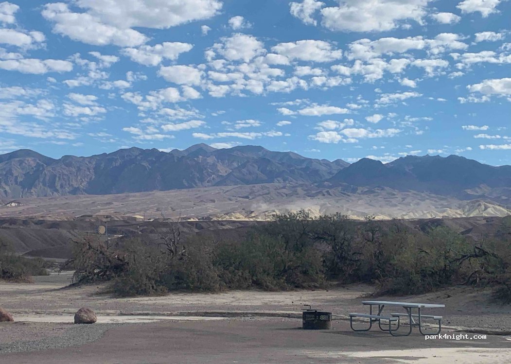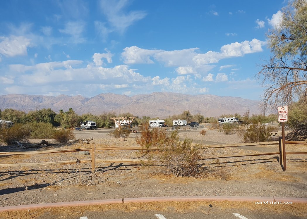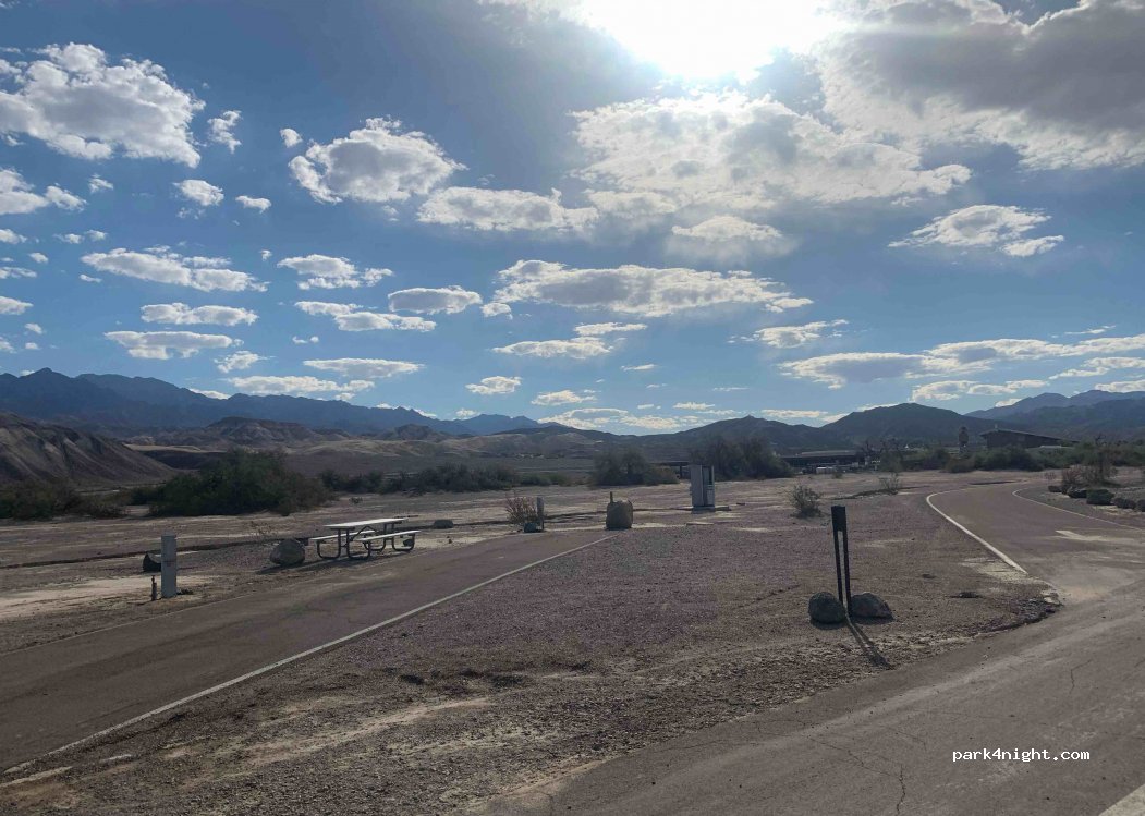 If entering Furnace Creek from the north, the entrance to the campground is right before the visitor center. Out rate was 30$ per night without any hook-ups. The sites for vehicles were all paved, also the drive ways. More like a RV park. Very clean restroom facilities. Great view.