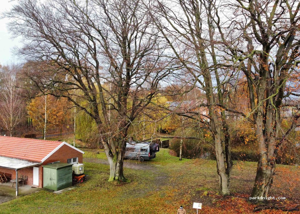 Parking lot at the village pond in Großberßen, at the sports field. Firm ground, slightly sloping and shady. Starting point of the stone grave path.